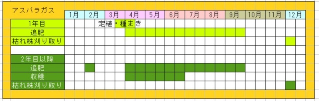 アスパラガスの栽培カレンダー