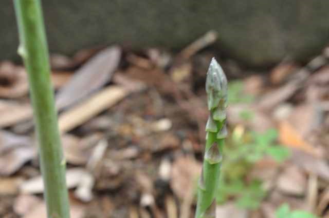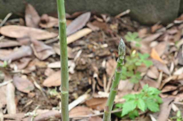 地上部に次から次に出てくるアスパラガスを、収穫することは、間引いていることになります。8月ごろまで、間引きながら収穫して、ある程度収穫ができたら、来年に備えて根を成長させるために、茎ト葉を伸ばして、収穫(間引き)は終了します。