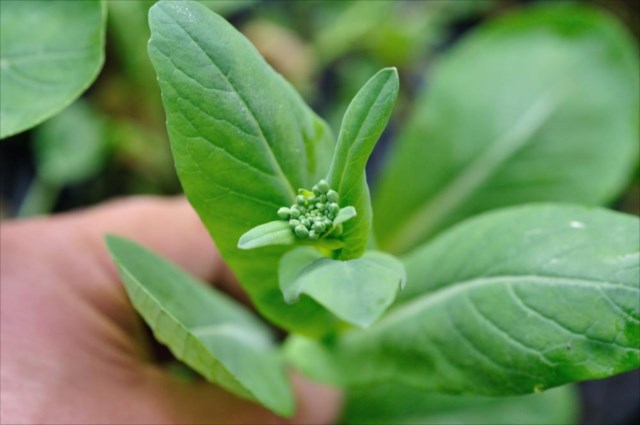 小松菜なばなの収穫時期の判断は、脇芽に蕾が出てきたころです。