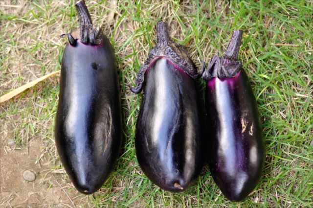 苗の植え付けは5月前後、開花後は、人工授粉などの作業は必要なく、実が15cmくらいに成長したものから随時収穫していきます。一番花が咲いたころ、その上下から出た勢いのいい脇芽を2本ほど残してそこから下の脇芽は全てかき取り、3本仕立てで育てるのが一般的です。下枝を剪定して風通しを良くしてやると、病害虫の予防にもなります。枝の剪定次第で長い間収穫できるのもナスの特徴の一つです。