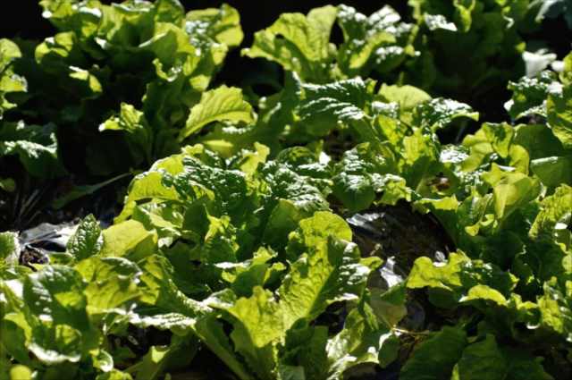 サンチュの草丈が20㎝から25㎝くらいに成長したころ、または株の直径が35cmから40㎝くらいに成長したころに収穫します。