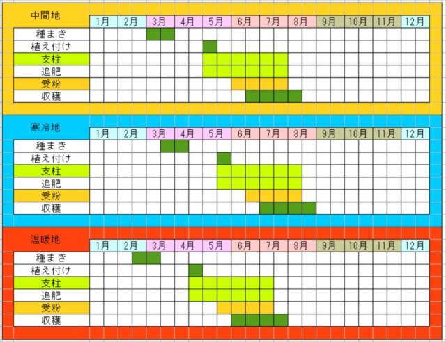 ズッキーニの栽培カレンダー