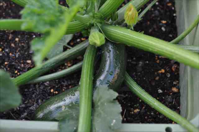 ズッキーニの収穫時期の判断は簡単で、実の大きさがその品種の規定の大きさに成ったら収穫します。ズッキーニの実は、火打ちするとすぐ大きくなり、びっくりするくらい大きくなる場合があります。あまり大きくなるとおいしくなくなるので、早期に収穫して、次の実を育てていきましょう。